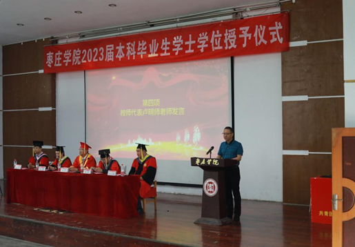 卢明师代表教师发言,为踏上新征程的2023届毕业生们送上了真挚的祝福与美好的期待,希望毕业生们带着母校的精神砥砺前行,在未来的路上一路顺风。
