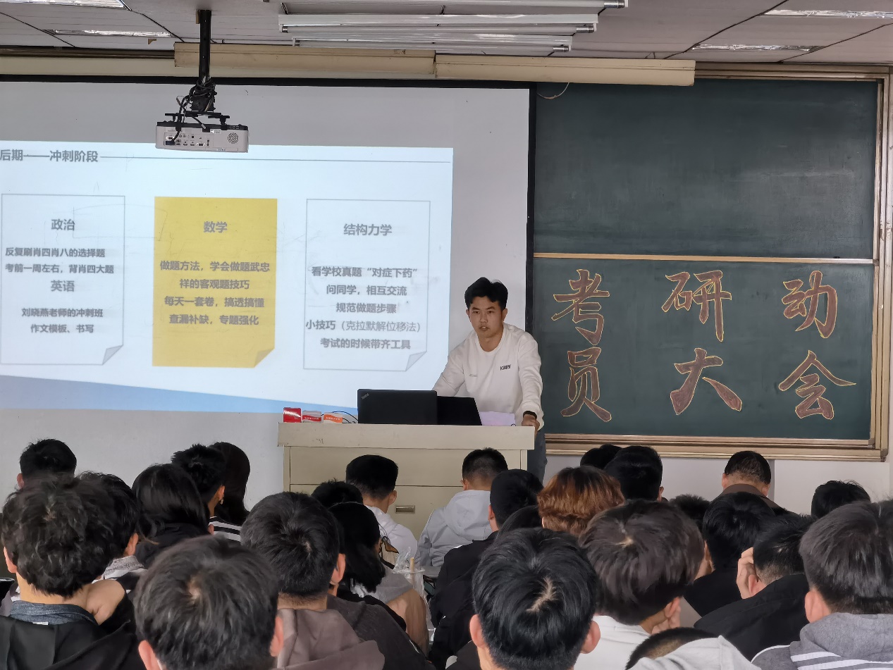 为进一步调动城建学子考研积极性,营造浓郁的考研氛围,解决考研准备阶段的迷茫和困惑,4月14日,WilliamHill中文官网2022年考研动员大会在理工楼2505教室举行。WilliamHill中文官网副经理裘娜、考研指导教师代表、2021届优秀员工代表以及2022届员工参加了大会。