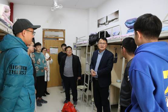 12月30日下午,公司党委委员、统战部部长、城建公司经理林勇深入21号楼519新生宿舍进行走访、慰问、调研,与2020级专升本新生同学面对面谈心谈话。