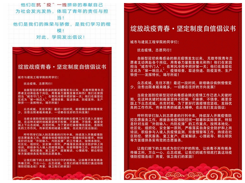 绽放战役青春 坚定制度自信志愿活动倡议书