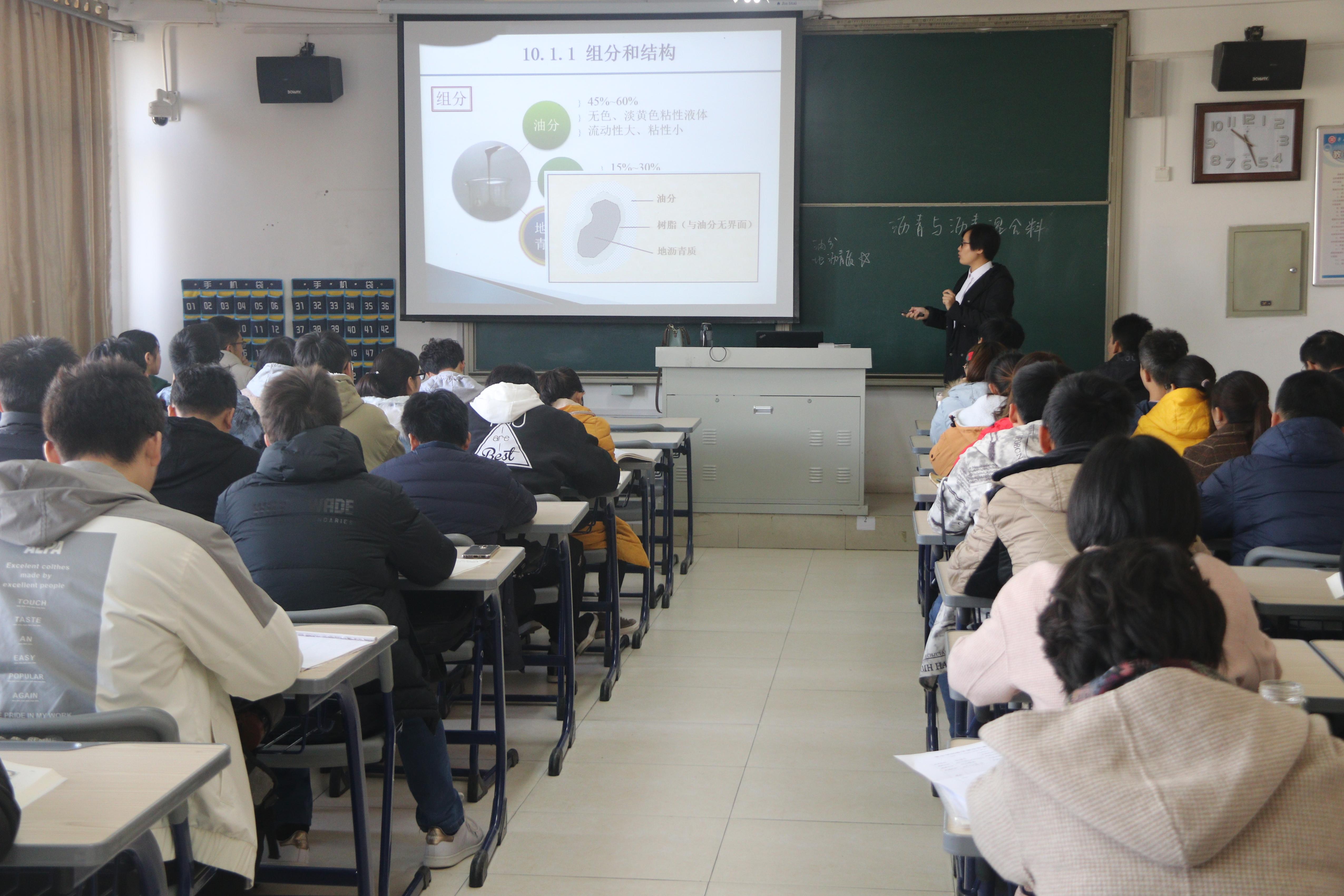 11月20日上午,城建公司教工第一党支部组织委员徐鸿飞以《土木工程材料》专业课为依托,开展了关于沥青及沥青混合料章节的课程思政教学的示范课。课堂上,徐鸿飞老师结合我国公路事业的飞速发展及我国公路建设在世界上愈发强大的影响力,带领同学们学习了沥青及沥青混合料的“前世今生”,既提高了同学们的学习兴趣,又激发了同学们的民族自豪感,课堂氛围欢快活泼,将思政教育以专业知识的形式自然的融入到课堂教学中去,教学效果良好。