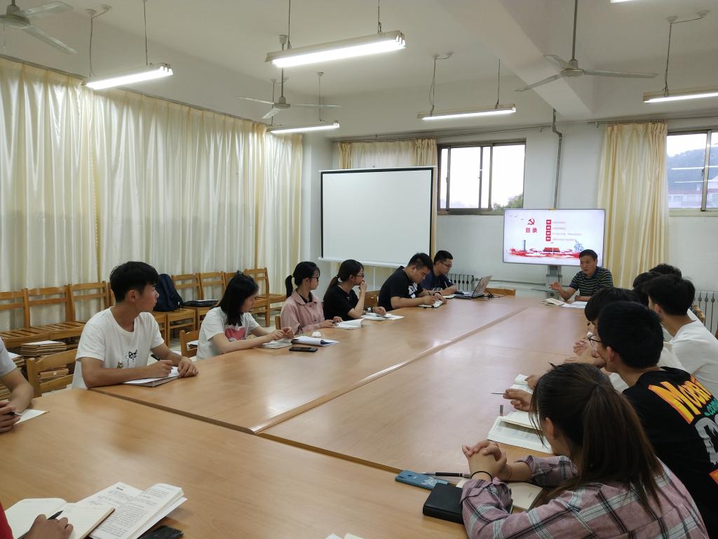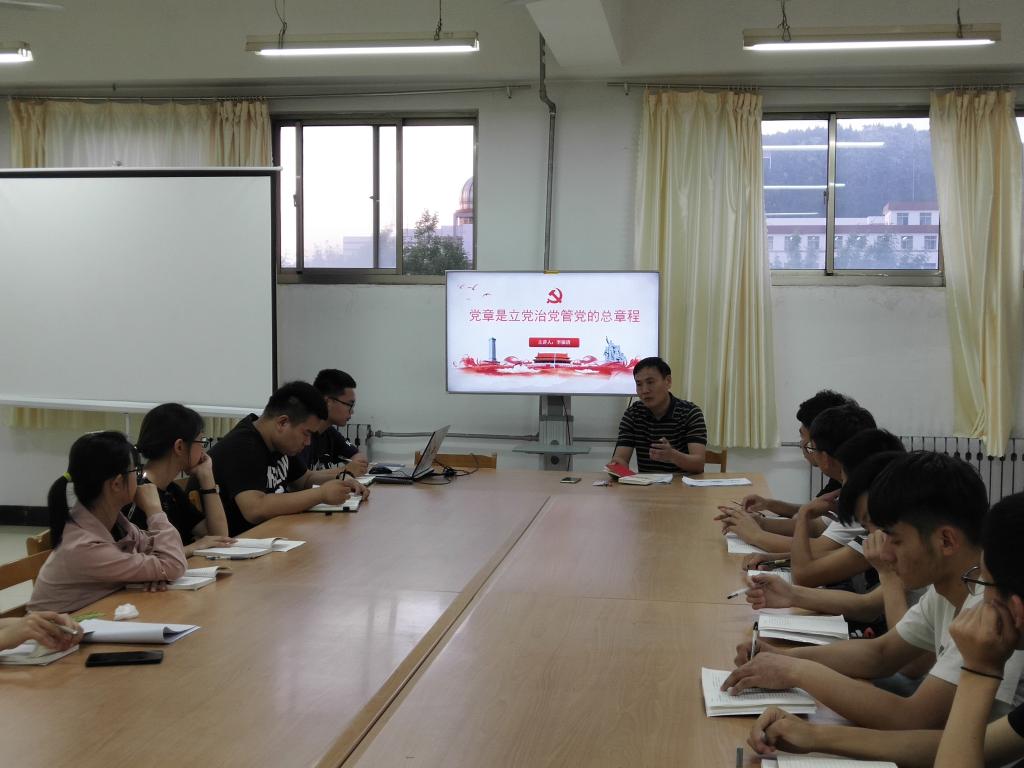 本次党课的主题是党章总纲解读。李书记带领大家了解了党的性质和行动指南,并详细介绍了党章历次修订的情况,向大家展示了党章一步步完善的历程。课上着重讲解十九大党章修改的内容和重要意义。