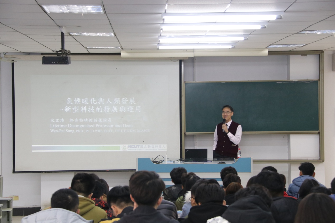 下午,在王满堂经理等人的陪同下,宋文沛教授为城建公司师生作了题为“气候暖化与人类发展——新型科技的发展与运用”的报告。宋教授的报告幽默风趣,富有启发性,台下的老师与同学们全神贯注投入其中,沉浸在这场知识盛宴里,报告会收到了良好效果。