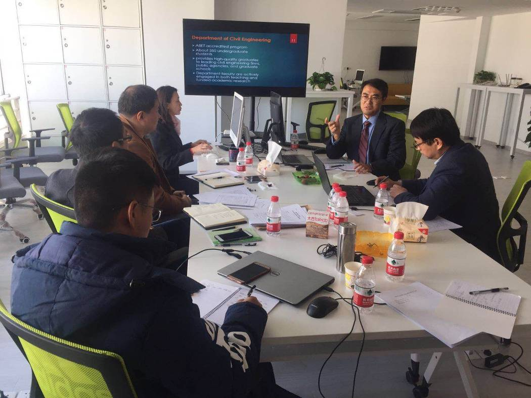 中美专家和土木教研室4位教师就土木工程专业认证、人才培养方案、专业课程引进及实验室建设进行了深度讨论,双方对“中美双百计划”项目的推进和专业建设有了更清晰的理解。首先,吴晓老师介绍了OBE成果导向教育理念与传统教育的区别,以及基于OBE理念的培养方案修订思路。其次,成鼎新教授和张举兵副教授分别讲解了ABET专业认证和土木工程CEEAA认证的标准和具体要求。两位专家结合土木工程专业认证标准和公司应用型大学建设的实际情况,与公司教师就人才培养方案进行了深入的研讨和修改,双方最终确定公司土木工程专业引进的10门专业课程。最后,两位专家对公司土木工程实验室及新校区实验室的建设给出了宝贵的建议。