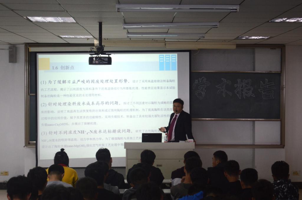 为了更好地完善和优化城建公司的科研团队建设和团队队伍建设,培养适应市场需求的高素质、强能力的应用型复合人才,10月11日下午14:00,东华大学环境科学与工程公司李天鹏博士在理工楼2505室为城建公司全体师生做了题为《新型陶粒的制备、表面改性及处理模拟废水机制研究》的学术报告。本次报告会由王满堂副经理主持。