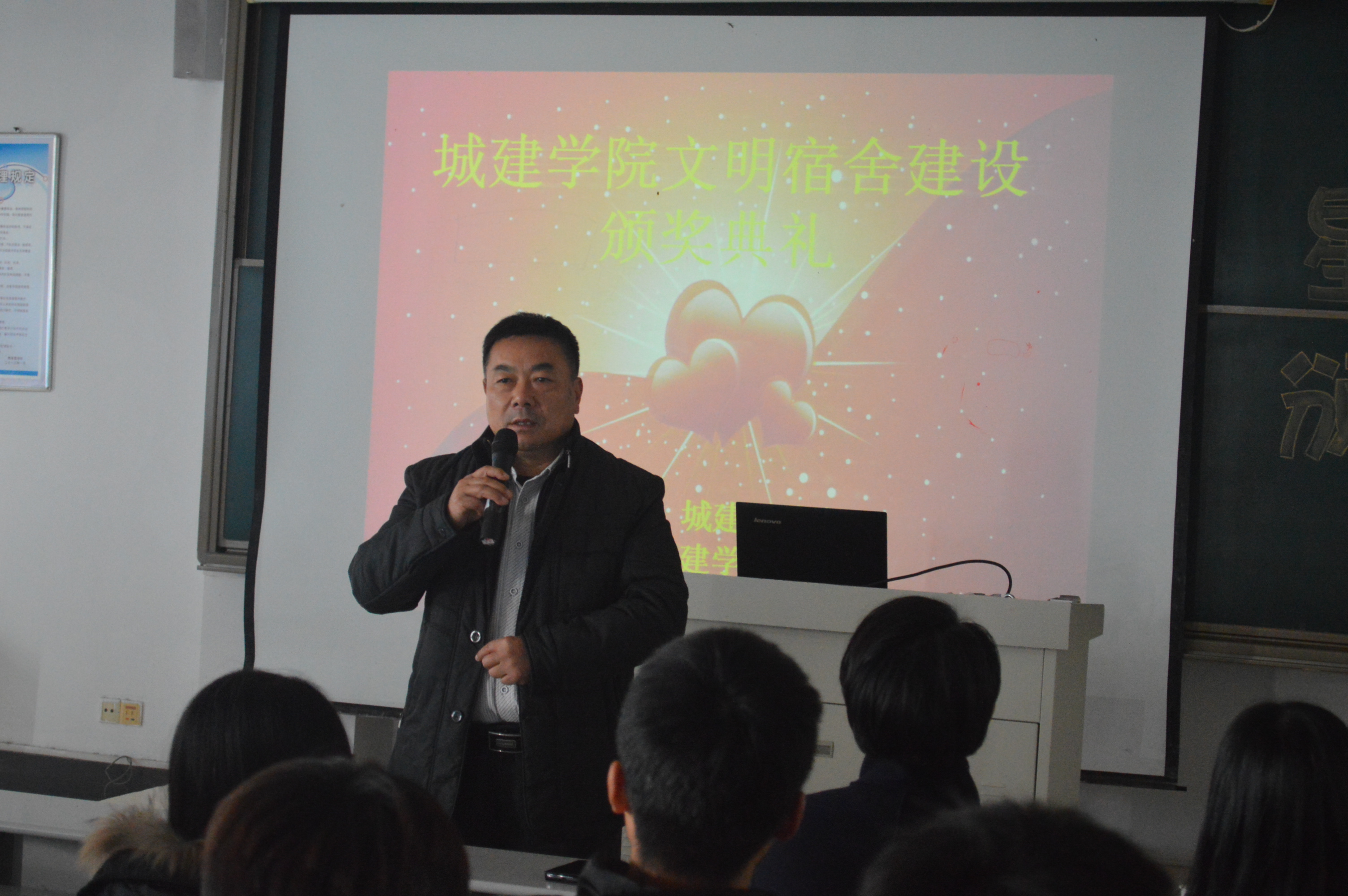 11月23日下午,城建公司在理工楼2505成功举办以“构建和谐宿舍,携手温馨校园”为主题的宿舍文化节颁奖典礼,党总支书记宋博、全体辅导员、员工干部以及2016级全体员工参加了此次典礼。
