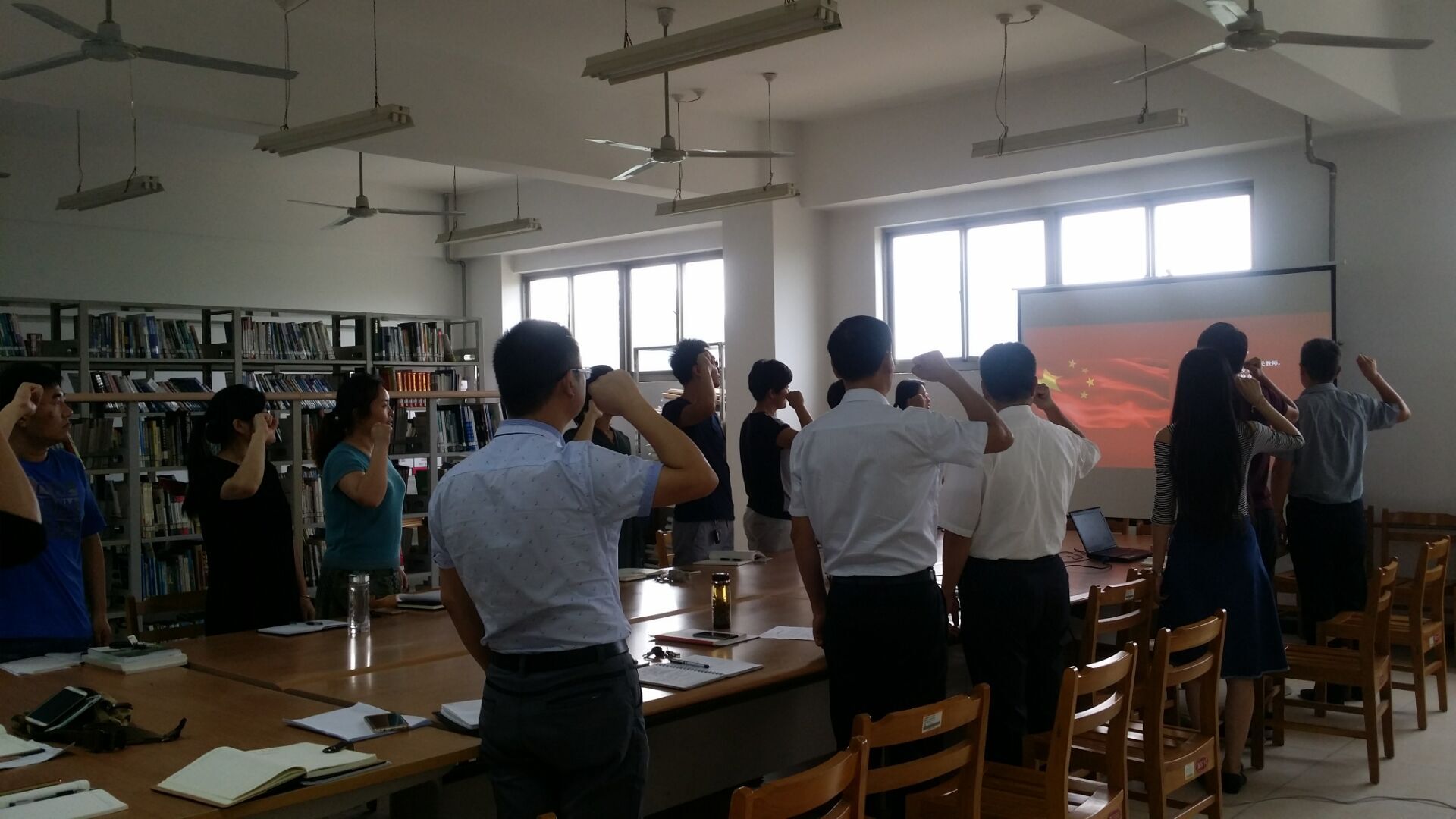 9月7日下午,城建公司在理工楼2321教室召开教师节座谈会暨宣誓仪式,面对鲜艳的五星红旗,王满堂副经理带领全院教师庄严宣誓,庆祝第32个教师节。