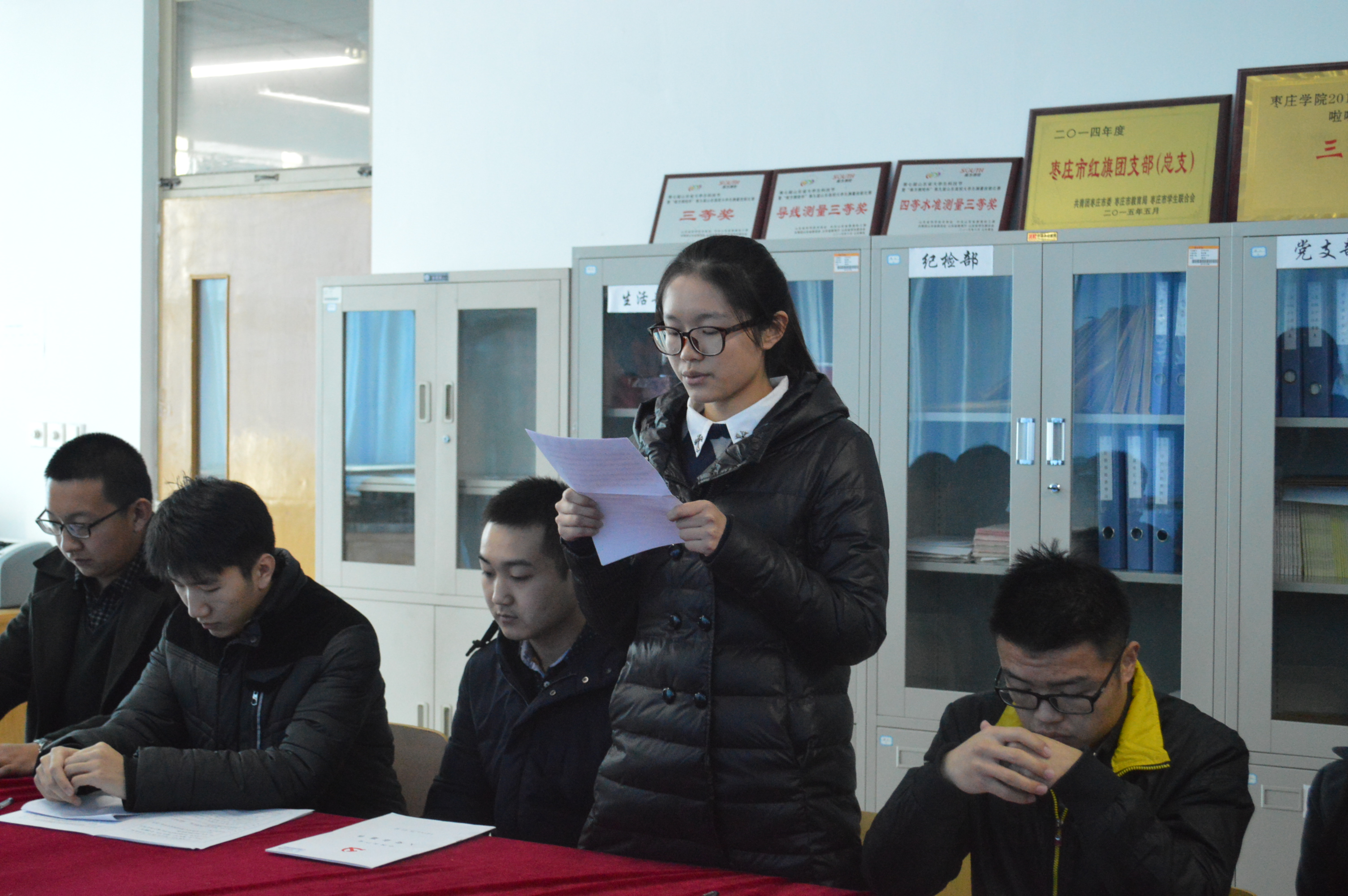 会议由团总支书记胡新华主持。会议内容分两项:预备党员转正及新党员纳新。预备党员和新党员详细汇报了自己在考察期间的思想、工作、学习等情况,对自身进行了深入剖析。通过大家认真地讨论和审议和表决,全票通过了曲文婷等4名同志的转正申请,接收了李玉莹等4名同志为中共预备党员的决定。