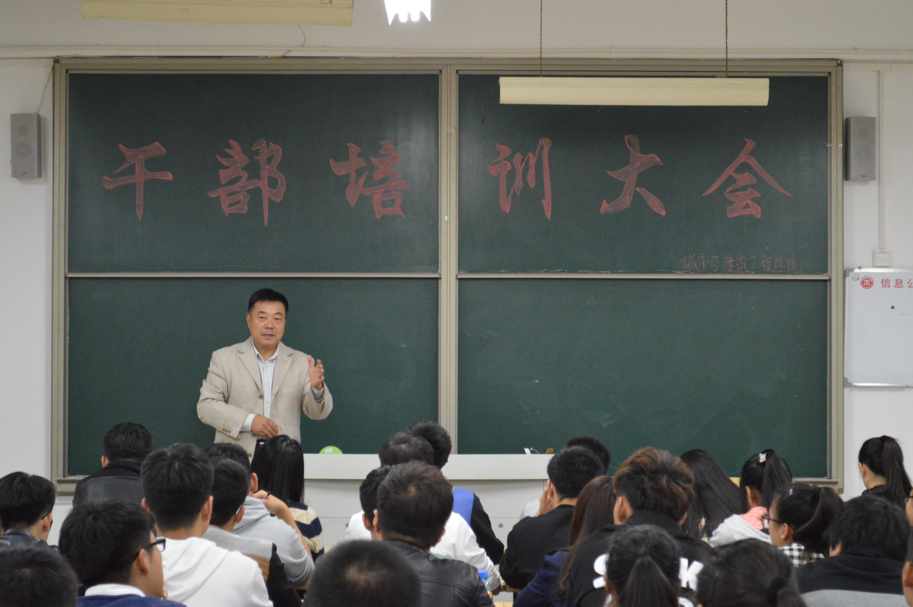 为了提高公司员工会干部、班干部的工作能力,提升个人综合素质。城建公司于10月14日晚在理工楼2320召开干部培训大会,会议由党总支书记宋博主讲,员工会干部以及各班班长出席会议。