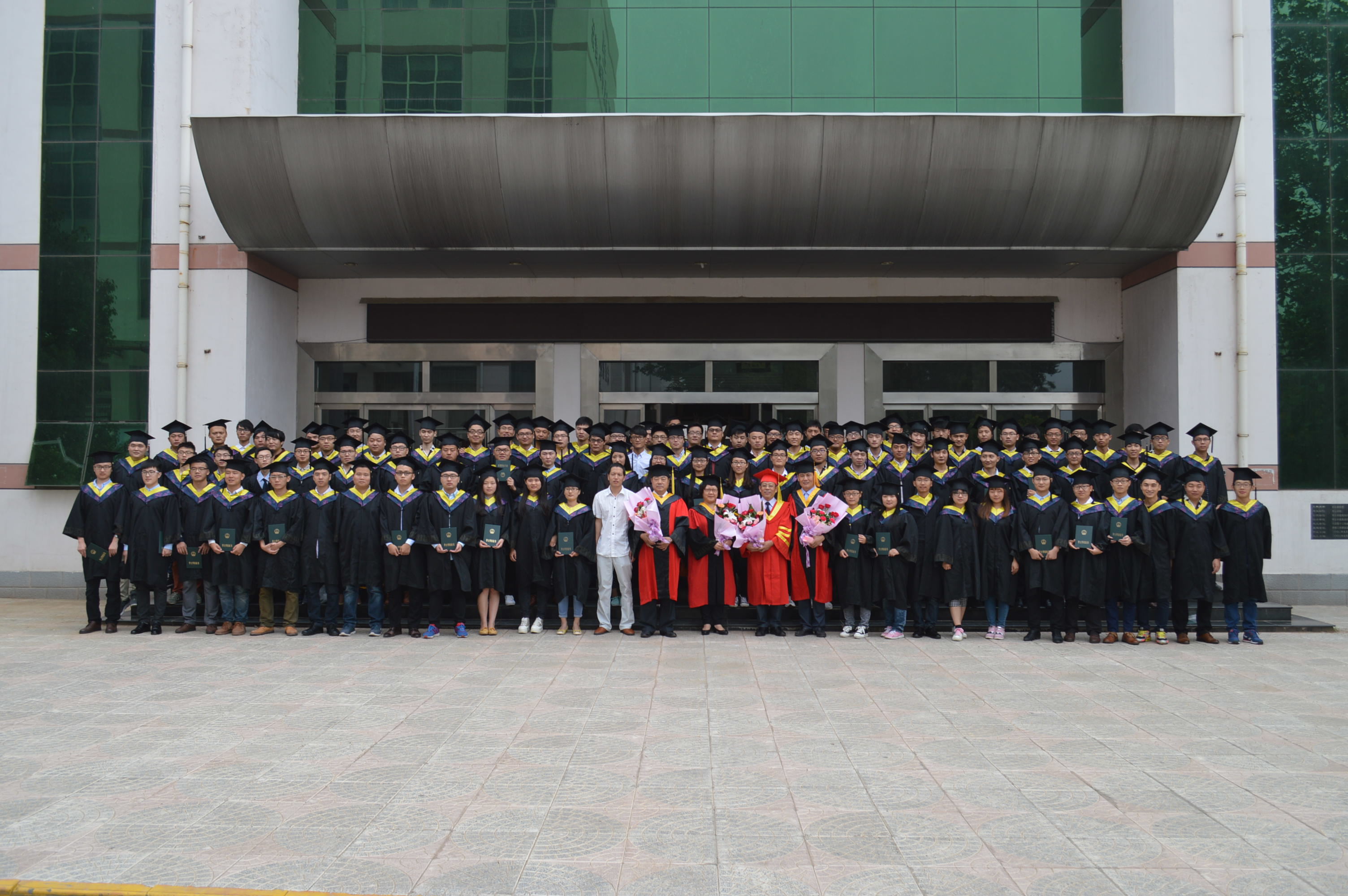 仪式后,公司党委委员、副董事长明清河教授、教务处处长徐虹教授、城建公司党政负责人与毕业生合影留念。