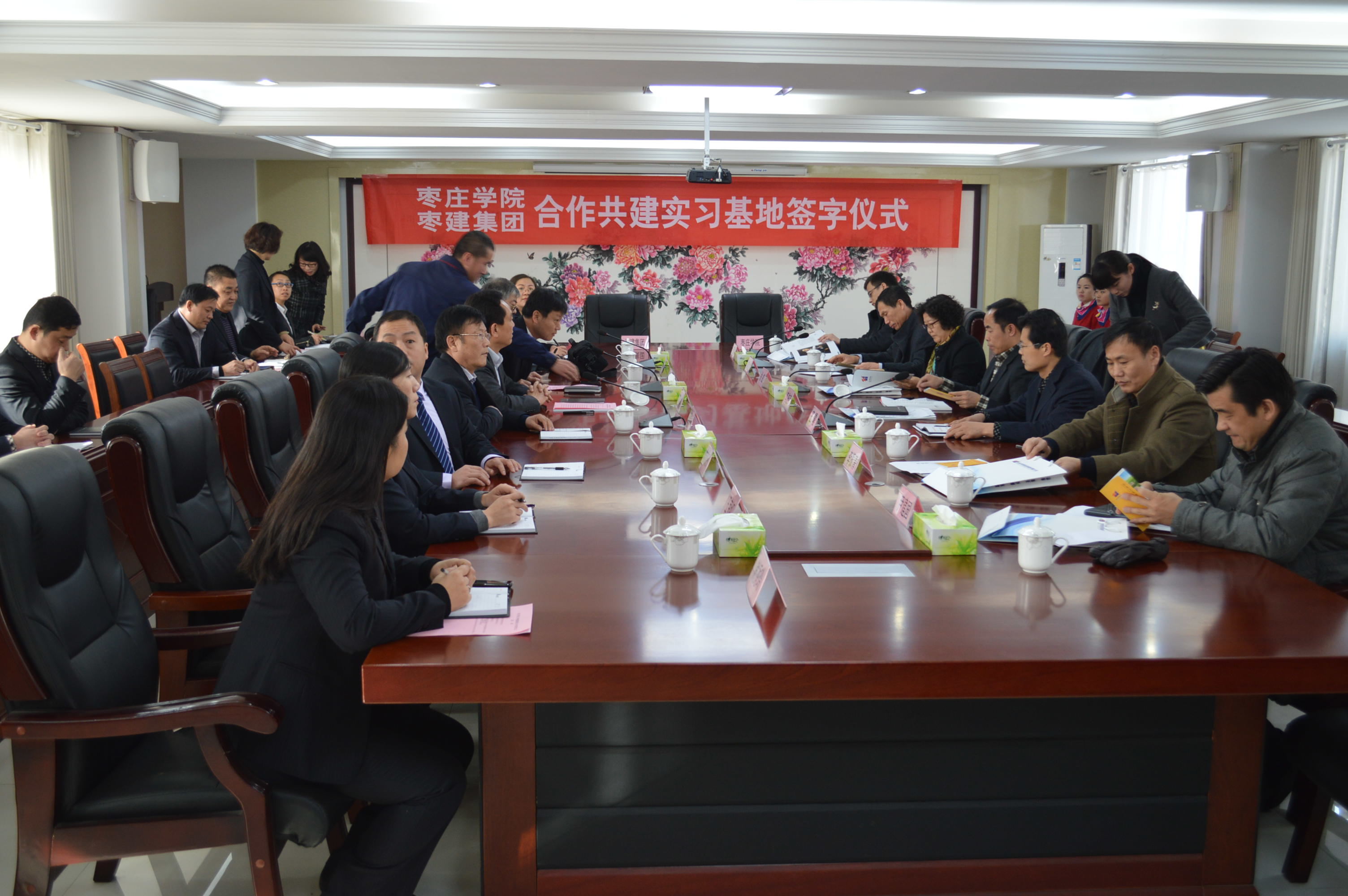 上午,公司与山东枣建建设集团有限公司在枣建建设集团总部举行了校企合作签字仪式。副董事长李进京、山东枣建建设集团董事长刘皓、枣庄市人社局、枣庄市节能办,以及公司教务处、城建公司负责人等出席了挂牌签约仪式。
