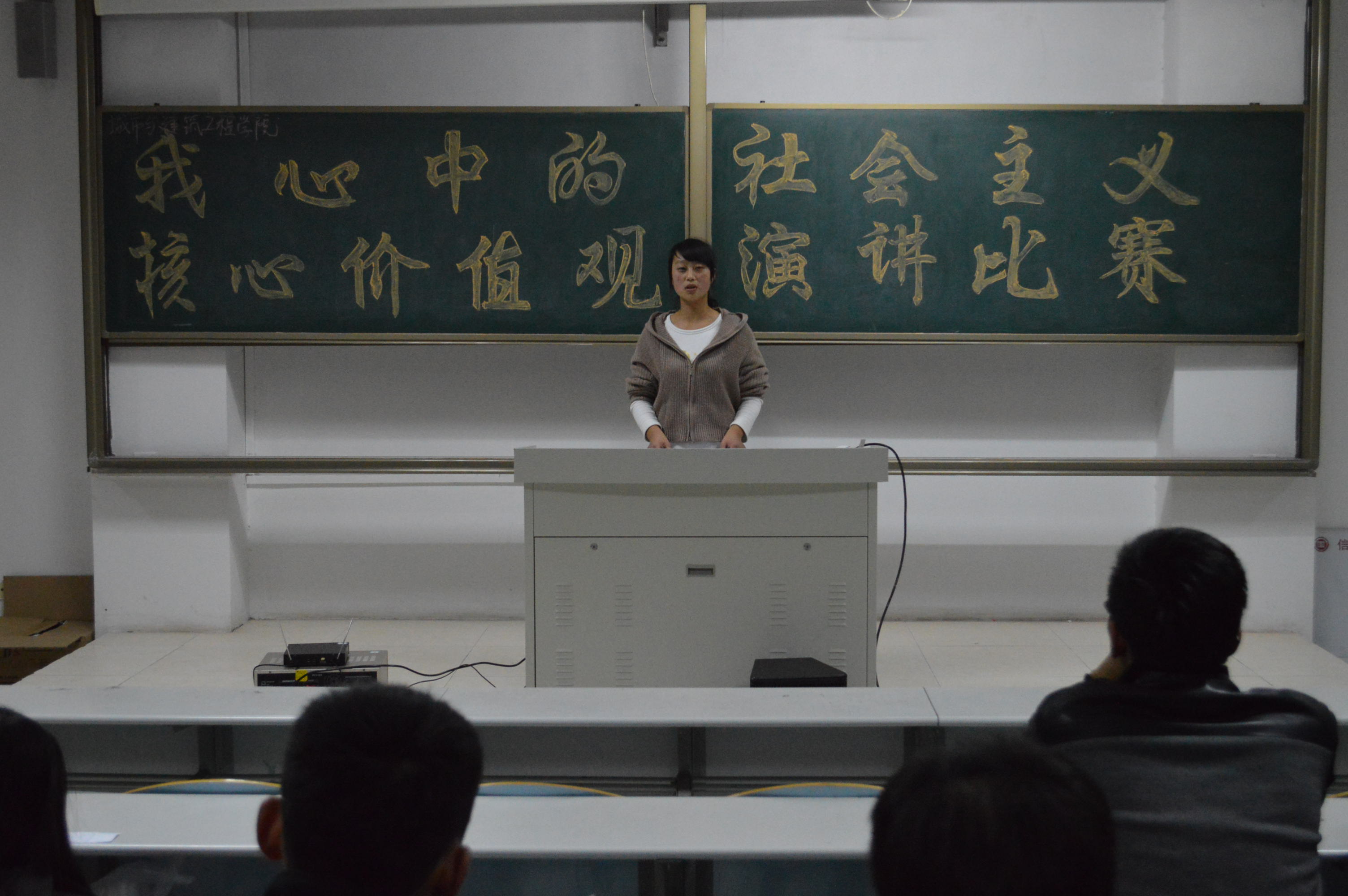 ,在理工楼2505教室举行“我为社会主义核心价值观代言”演讲比赛。部分教师,2014级全体新生出席本次比赛。