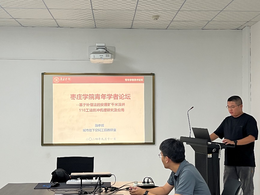 蒯孝辉博士做了题为“基于补偿法的安居矿千米深井110工法防冲机理研究及应用”的学术报告,其以安居煤矿千米深井为背景,综合使用理论分析、数值模拟、模型试验、现场工业性应用等手段,对110工法补偿防冲机理进行研究。主要分析了“高位岩梁+低位短臂梁+NPR锚索+碎石帮”的协同作用实现平衡开采的力学机理;通过开展千米深井110工法物理模型试验,得到了开采补偿和开挖补偿共同作用下采场及成巷围岩应力演化规律,阐明了110工法补偿防冲机理;提出以“切顶碎胀自动充填开采补偿+NPR高预应力补偿支护”为核心的千米深井110工法补偿防冲控制对策,有效降低了微震事件发生的频次和能量。