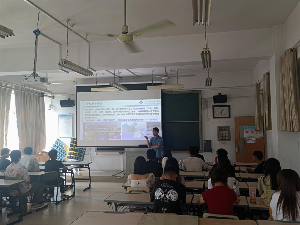 第二场由山东科技大学能源与矿业工程公司宣讲,王教授两人从院系的历史传承到学科优势,从团队力量到科研成果,向同学们一一介绍,让同学们对能源与矿业工程公司有了深入的了解。