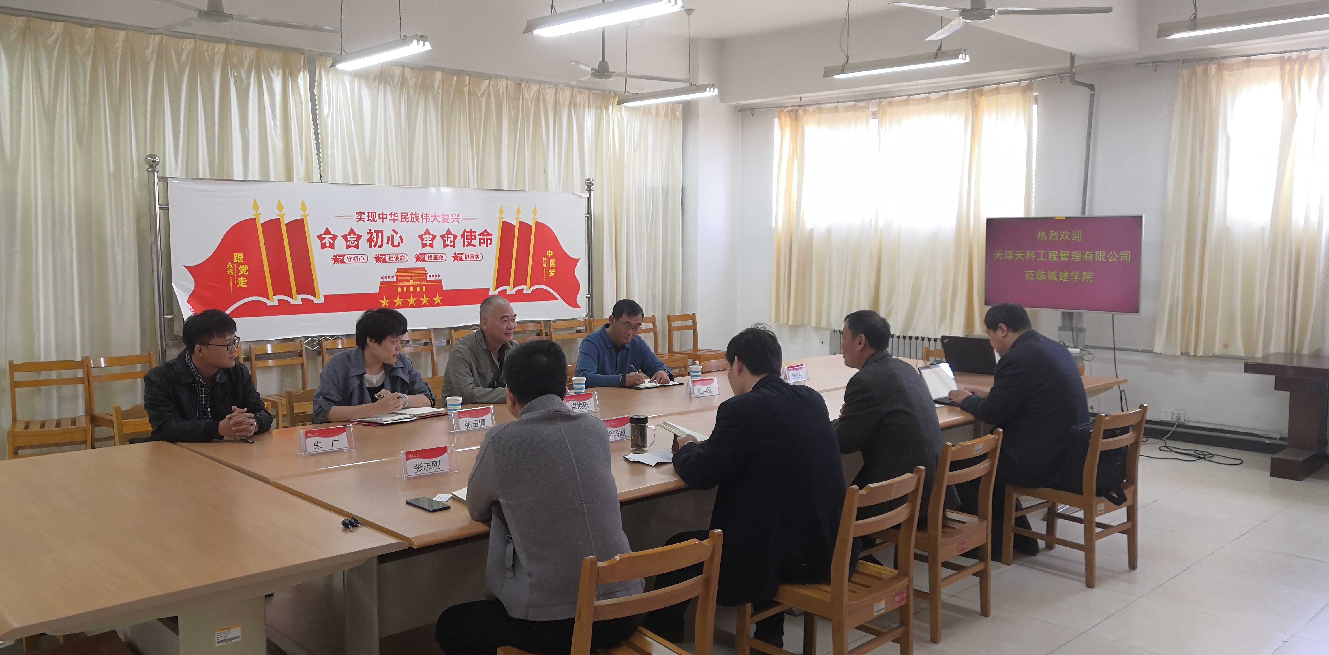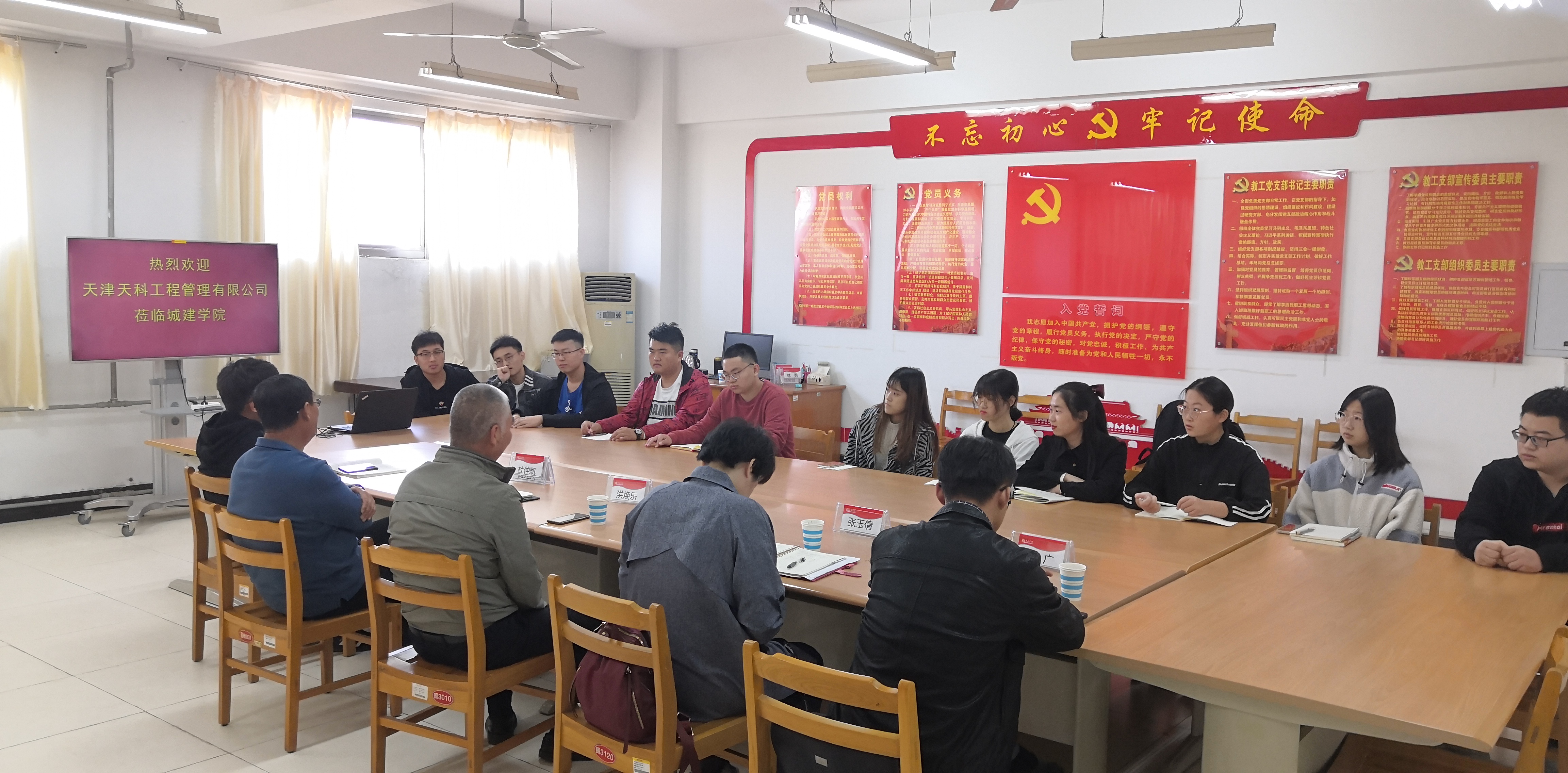 2020年10月22日上午,天津天科工程管理有限公司副总经理洪焕乐、杜仲凯一行四人来公司考察交流。城市与建筑工程公司党总支书记李振清、党总支副书记徐海波、就业指导教师、土木工程专业负责人及部分员工代表参加座谈会。