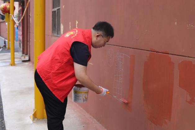 活动当天,志愿者们化身粉刷匠,手持工具,专注地清理墙面的污渍,将墙面粉刷一新。原本陈旧的墙面在他们的妙手下,焕发出新的生机与活力,为社区增添了一抹清新而明亮的色彩。他们不怕脏、不怕累,以实际行动为社区 “美颜”,打造更加美观宜居的生活空间。