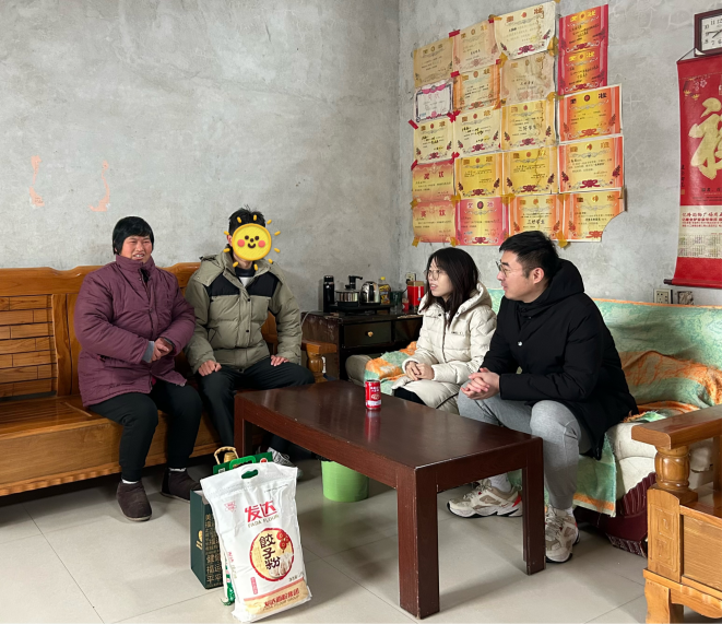 为做好家庭经济困难员工资助育人工作,构建家校协同育人体系,WilliamHill中文官网于1月18日开展寒假家访活动,辅导员宋美娇、张萍萍、唐家良一行共同前往济宁市梁山县、汶上县、微山县对建档立卡家庭员工进行走访慰问。