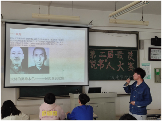 首先由20级土木类2班的姜贵严、马金成同学带来作品《大清帝王—康熙》,两位同学讲解时绘声绘色,诙谐幽默,恰当运用肢体语言,仪态端庄大方,举止自然有风度,富有艺术感染力,深受观众的一致热爱。其次由20级土木类3班的张帅同学进行表演,民国风云人物杜月笙。演讲的技巧极高,加之好的观点及思想深度,好的切入点确保最短的时间内激发听众的兴趣,听者迅速就进入演讲者设计的语境。
