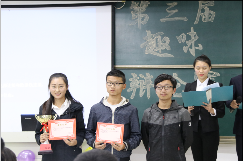 唇枪舌战赛风采,针锋相对论天下。在主持人宣读了比赛规则后,六支队伍开始了三场唇枪舌战的辩论往来。辩手眼神中认真的光芒证明了他们对辩论赛的重视,充足的赛前准备也让辩论赛更加精彩频出。第一组辩论双方你来我往,互不退缩,围绕“生活中的暴击该不该感激”进行了针锋相对的辩论。他们唇为枪,舌为剑,独特特色的辩解,智慧设计的陷阱,充分的展现了辩论赛的魅力。第二场辩论围绕“分手后该不该做朋友”这一论题双方各执己见,畅所欲言。幽默的谈吐,伶俐的口齿将辩题论述的淋漓尽致。第三场辩论则是以“外卖迟到该不该投诉”展开辩论,双方辩手唇枪舌战,辩赛场硝烟,口若悬河,理是非曲直。双方辩风俱佳,言谈得体,可谓势均力敌。经过一番较量后,干干队和忽悠队凭借着精彩的立论获得了团队优秀奖,更有多名辩手凭借出色的辩风获得了优秀辩论手的称号。