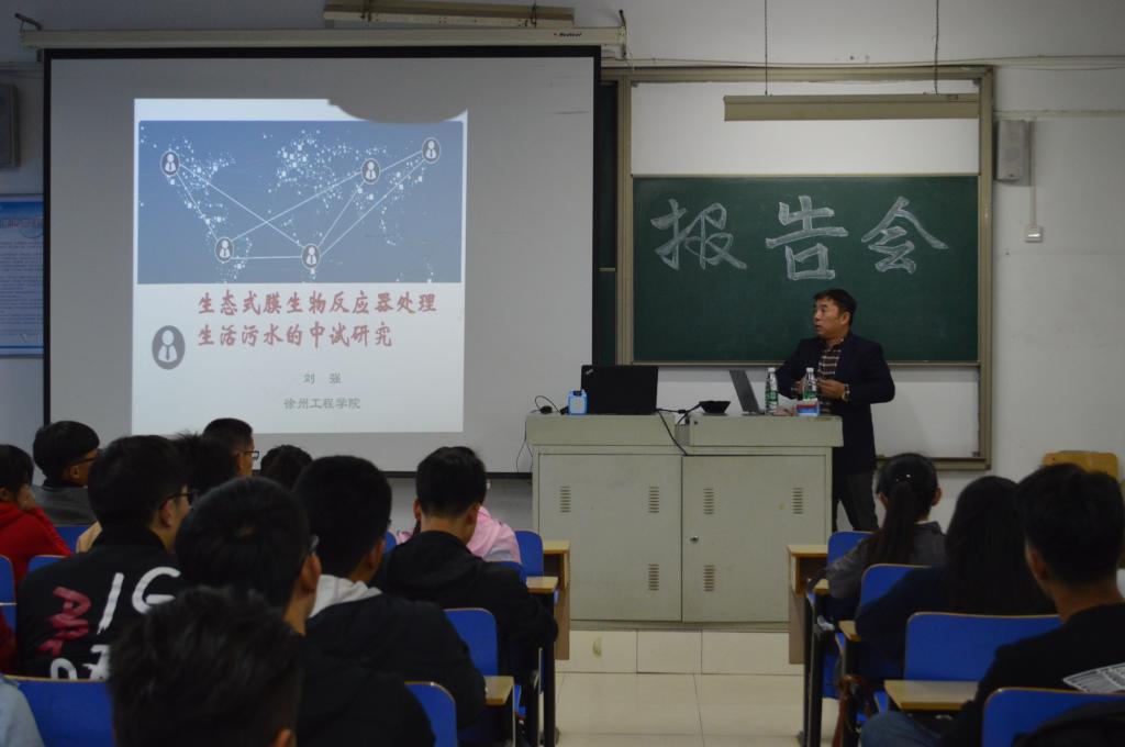 为进一步加强给排水学科专业建设,培养适应市场需求的高素质、强能力的应用型复合人才,为城建公司师生搭建一个良好的学术交流平台,10月17日下午16:00,城建公司徐州工程公司刘强教授在理工楼2518,为给排水专业全体师生做了题为“生态式膜生物反应器处理生活污水的中试研究”的学术报告。