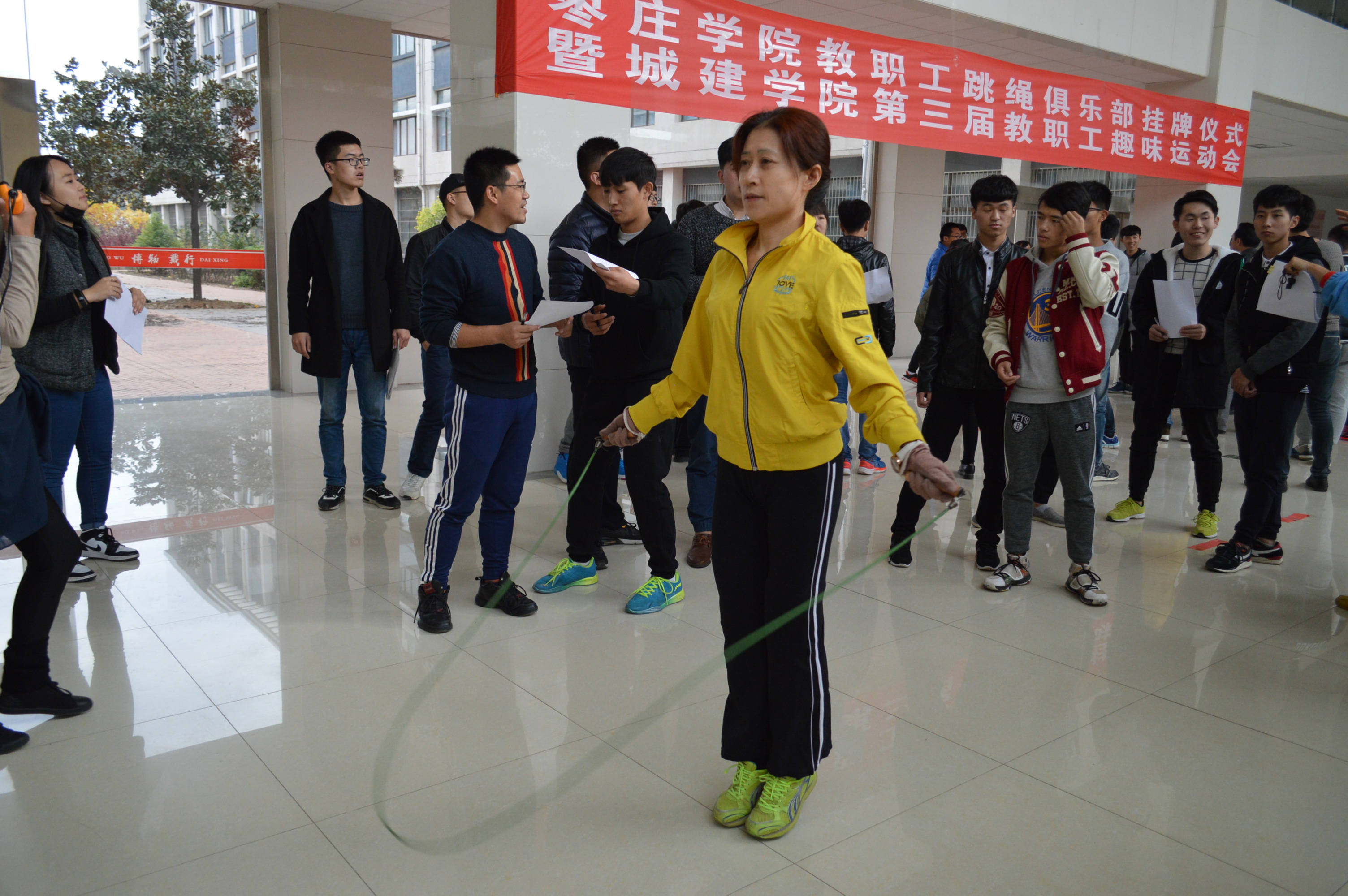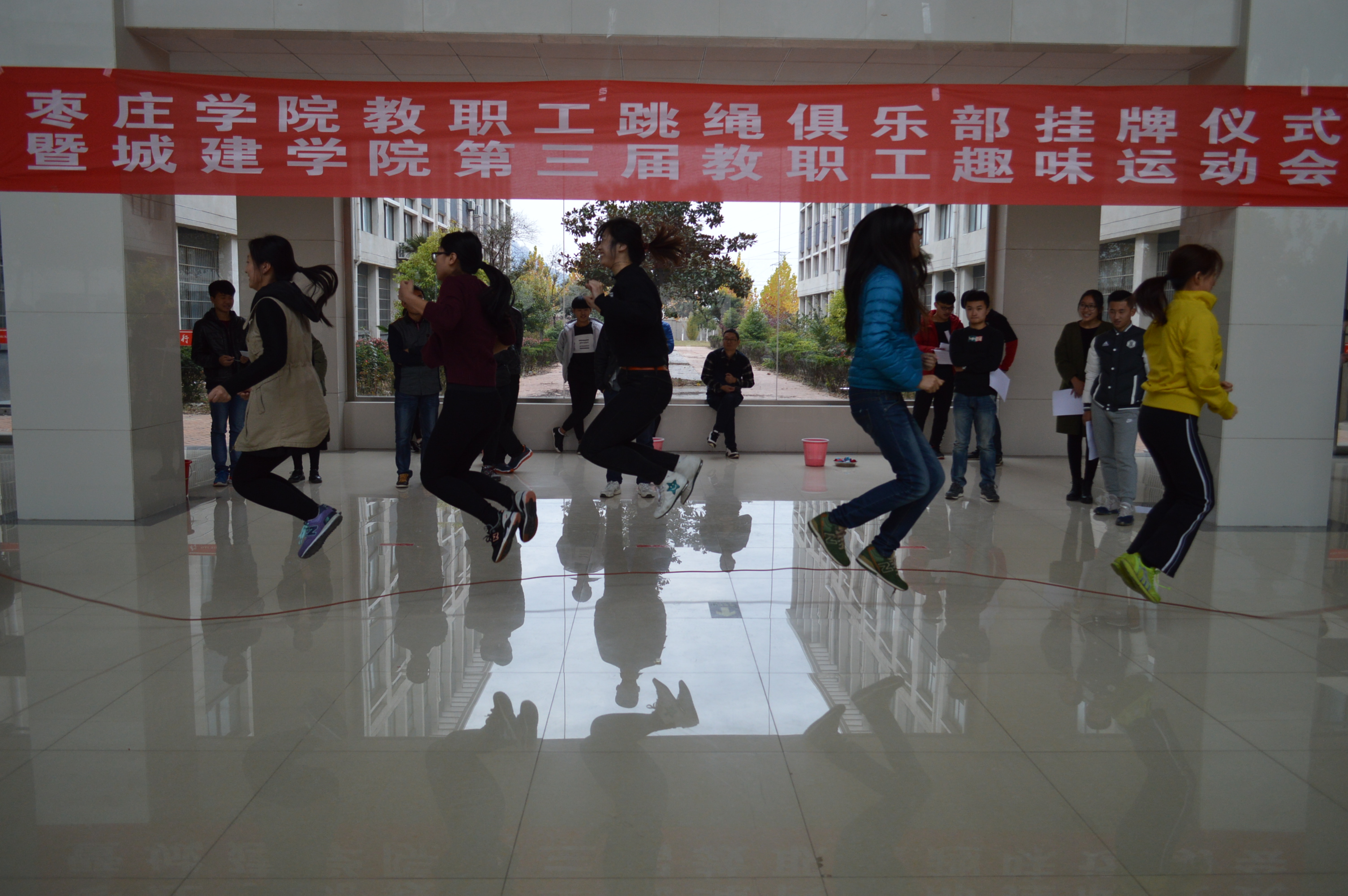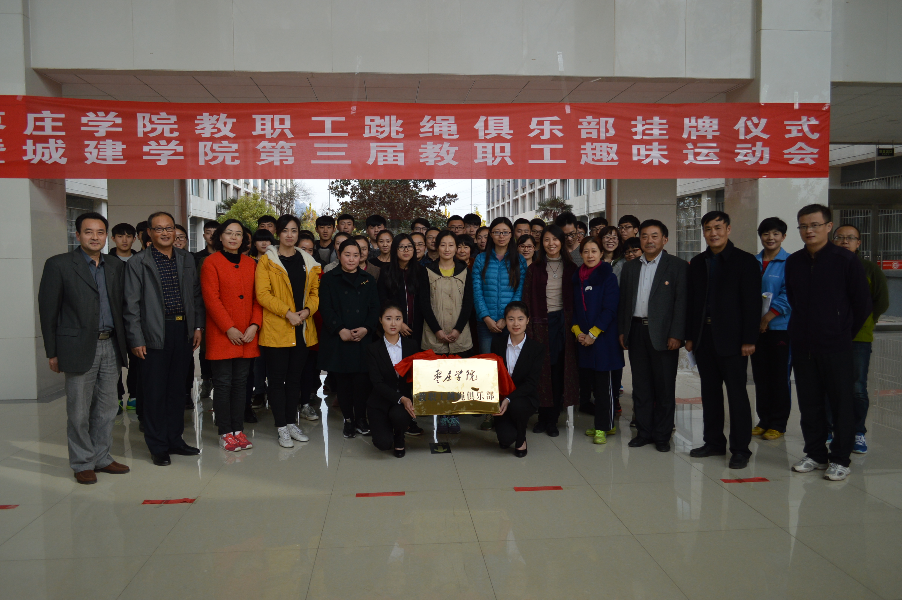 为了丰富教职工的文化生活,增强教职工的体质,11月16日下午,城建公司在新实验楼大厅举办了威廉希尔WilliamHill教职工跳绳俱乐部揭牌仪式暨城建公司第三届教职工趣味运会。校工会主席韩帮泉、部分单位部门分工会及城建公司全体教职工参加了此次活动。