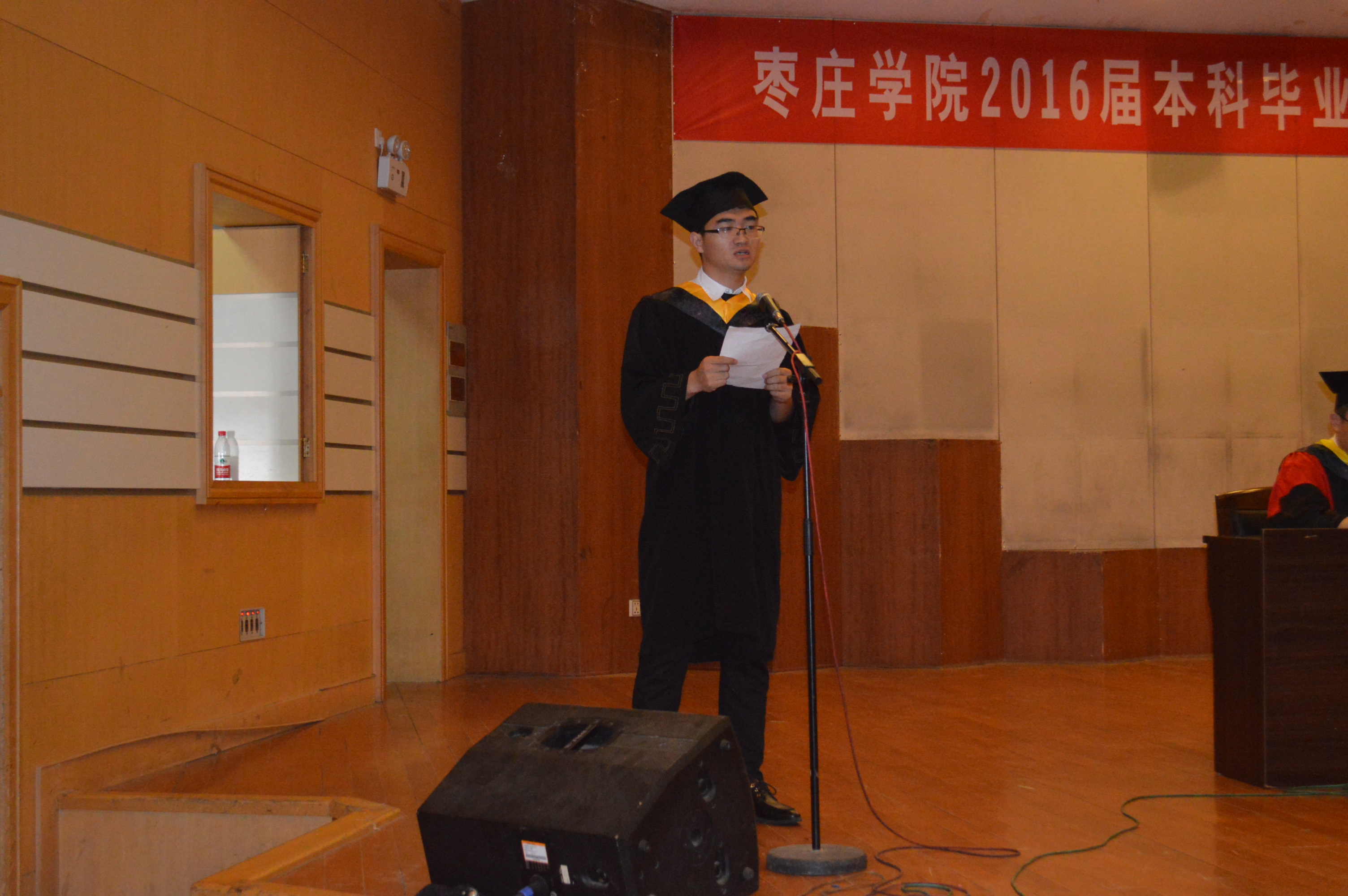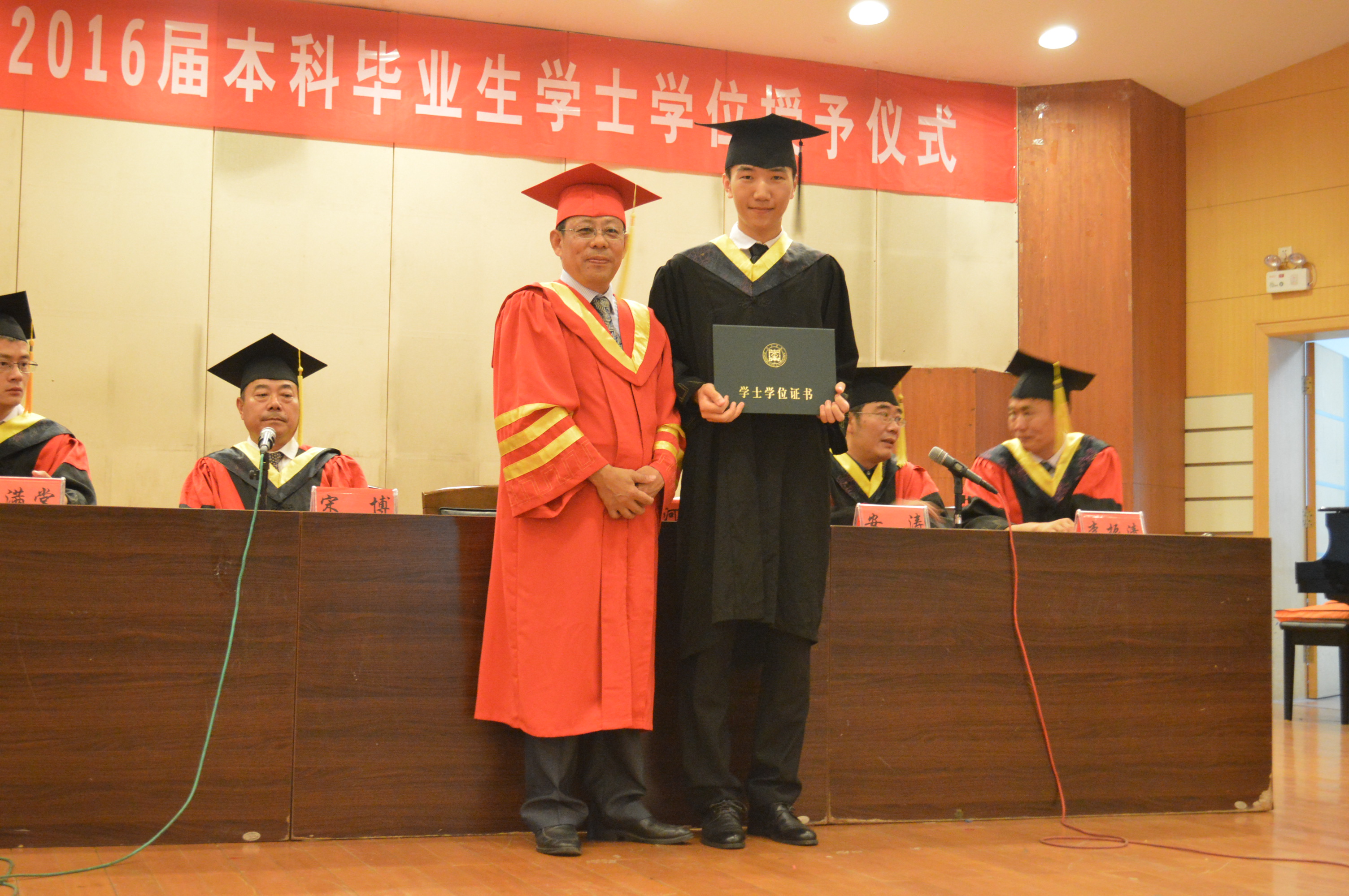 仪式在庄严的国歌奏唱中拉开帷幕。 经理李振清代表公司向圆满完成学业的同学表示热烈祝贺,向辛勤付出的老师表示了感谢。向毕业生 提出了殷切希望:首先是修身立德,恪守校训,做一个有德之人,其次是博学笃志,孜孜不倦的学习,做到德才兼备;最后要心怀社会,甘于奉献、勇于担当。接着, 2016 届毕业生依次上台接受学士学位证书。公司党委委员、副董事长明清河教授为每位毕业生拨动学士帽的流苏,流苏从右侧到左侧的拨动象征着同学们完成了从员工到学士的转变。之后,老师代表,员工代表分别进行发言,表达了师生间深厚感情和不舍之意。