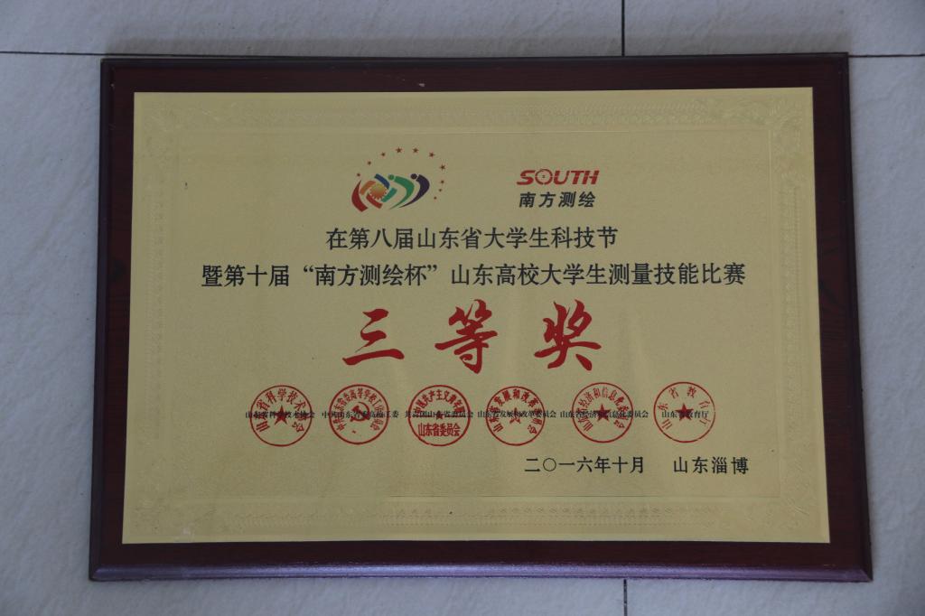 第八届山东省老员工科技节暨第十届“南方测绘杯”山东高校老员工测量技能比赛三等奖